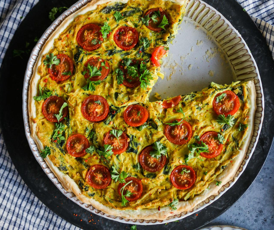 🥚 Tofu Quiche – Learn how to create a savory, egg-free quiche with a flaky crust and creamy tofu filling, filled with sautéed vegetables and French flair.