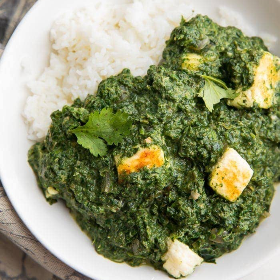 A savory spinach-based curry with pan-seared paneer cheese that’s rich, comforting, and deeply satisfying.